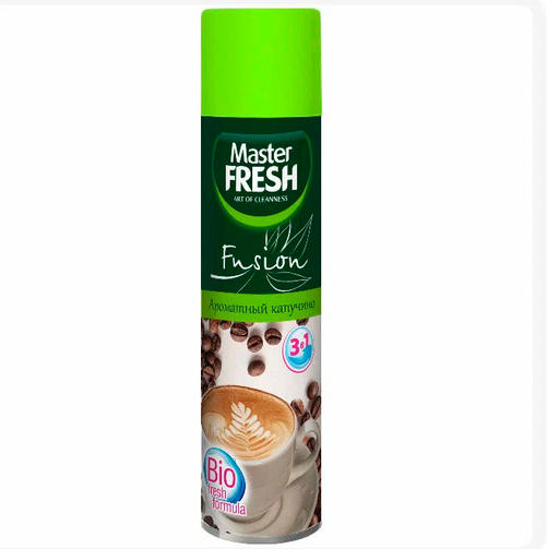 Master FRESH Освежитель воздуха Ароматный Капучино 300мл Легкий нежный аромат освежителя воздуха 'Master Fresh Fusion' надолго сохранит ощущение свежести и чистоты в Вашем доме. Специально разработанная формула 'Bio fresh formula' обеспечивает три-активное действие продукта: свежесть, аромат и нейтрализатор неприятных запахов. Оригинальные парфюмерные отдушки - аромат кофе в вашем доме. Не содержат озоноразрушающих хладонов. Форма выпуска: аэрозоль 300 мл Срок годности 36 мес. 108,28 ₽ / шт
