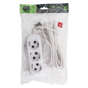 Удлинитель бытовой 5 м, 10A, тип УХз10, с заземлением, 3 розетки Сибртех 96067