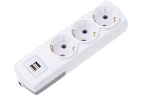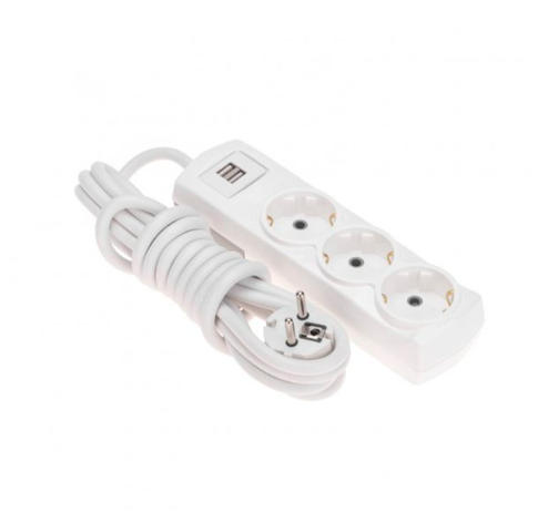 Удлинитель PREMIUM 3гнезда, 3м, 3х1,5мм кв, с/з, 2 USB, белый REXANT 13-4110