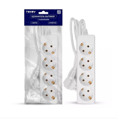 Удлинитель 4х3м с заземл. 16А 3х1 TOKOV ELECTRIC TKE-C01-BU4-3-1-Z