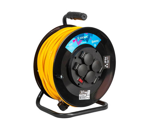 Удлинитель на кат. 4х30м с заземл. 16А IP44 3.5кВт ПВС 3х2.5 КОСМОС YKKsm30m-4g-Z(2.5)IP