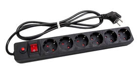 Удлинитель с сетевым фильтром 6х3м с/з. 10А IP20 защ. шторки ПВС 3х0,75 черн. UNIVersal 967U-4003