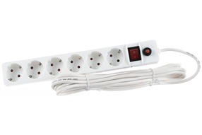 Удлинитель с сетевым фильтром 6х5м с/з. 10А IP20 защ. шторки ПВС 3х0,75 бел. UNIVersal 967U-3005