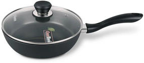 Сковорода Maestro MR1205-28 изготовлена из высококачественного литого алюминия, что обеспечивает прочность и долговечность изделия. Благодаря этому материалу сковорода подходит для всех типов плит, включая индукционные. Крышка сковороды выполнена из термостойкого стекла, что позволяет наблюдать за процессом приготовления пищи. Специальное отверстие для выхода пара обеспечивает равномерное распределение тепла и предотвращает выкипание жидкости. Удобство использования сковороды Maestro MR1205-28 обеспечивается благодаря удобной бакелитовой ручке и внутреннему антипригарному покрытию Quan Tanium с частицами титана. Это покрытие предотвращает пригорание пищи и облегчает процесс мытья сковороды. Сковорода Maestro MR1205-28 подходит для приготовления разнообразных блюд, включая мясо, рыбу, овощи и гарниры. Выбирая сковороду Maestro MR1205-28, вы получаете качественный и функциональный кухонный инструмент, который станет незаменимым помощником на вашей кухне. 3 360,00 ₽ / шт