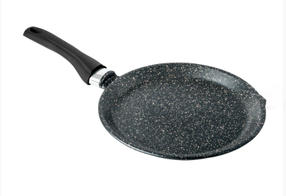 Блинная сковорода с антипригарным покрытием – литая алюминиевая посуда, которая подходит для газовых, электрических и стеклокерамических плит. При минимальном использовании масла получаются тонкие блины и пышные оладьи. «Гранит». Коллекция «мраморной посуды» с улучшенным четырёхслойным антипригарным покрытием. Дополнительный слой с мраморным эффектом увеличивает износостойкость и создаёт оригинальный оттенок чёрного мрамора. Литой пищевой алюминий - без канцерогенных веществ и посторонних запахов. Материал долговечный, не поддается деформации. Толстые стенки и утолщенное дно обеспечивают равномерное распределение тепла. Сковородка с антипригарным покрытием на водной основе без вредных химических соединений экологична и безопасна. Процесс готовки может протекать без добавления масла. Гладкая поверхность — залог легкого мытья как вручную, так и в посудомоечной машине. Эргономичные ручки сковородок из бакелита не нагреваются, а благодаря покрытию софт-тач не выскальзывают из рук. 1 990,00 ₽ / шт