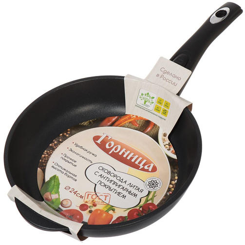 В производстве литой антипригарной посуды используем высококачественное сверхпрочное антипригарное покрытие, которое наносится методом напыления, что обеспечивает долговечность покрытия и высокую надежность нашей посуды. Применяемое покрытие не содержит в своем составе опасных для здоровья человека веществ PFOA и устойчиво к агрессивным средам и воздействиям температуры. При нагревании посуды также не выделяются вредные токсичные и канцерогенные вещества, использование такой посуды абсолютно безопасно. Одним из множества преимуществ литой алюминиевой посуды является экономия электроэнергии за счет необычайной теплоемкости алюминия. Утолщенное дно 5-6 мм и стенки 3,8-4,2 мм посуды ООО «Горница» при равномерном распределении тепла по всей поверхности посуды обеспечивают необходимый температурный режим, который позволяет приготовить вкусную и здоровую пищу, сохраняя при этом все полезные витамины и свойства продуктов. Посуда легко и быстро моется благодаря гладкой не пористой поверхности и при бережном отношении прослужит долго. 1 999,00 ₽ / шт