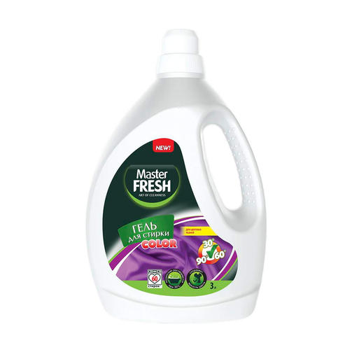 Оптимальная формула геля для стирки Master Fresh - это идеальное сочетание качества и цены в одном флаконе. Хорошо растворяется в воде, отстирывает различные загрязнения. Сохраняет структуру ткани, интенсивность и яркость цвета даже после частых стирок. Придает изделиям свежесть и приятный аромат. Флакон эргономичный, плотный и очень удобный, за счет специально эксклюзивно разработанных выемок под «среднюю» женскую руку, флакон не выскальзывает даже из влажной руки. Колпачок является мерным стаканчиком, обеспечивает экономный и рекомендованный производителем расход моющего средства. Предназначен для стирки различных цветных изделий из всех типов тканей во всех видах стиральных машин и при ручной стирке. Назначение: для цветного белья; Состав: ≥ 30 % вода, < 15 % апав, < 5 % хлорид натрия, нпав, парфюмерная композиция, силиконовый пеногаситель, замутнитель, лимонная кислота, оптический отбеливатель, консервант, краситель; Объем: 3 л. 595,94 ₽ / шт