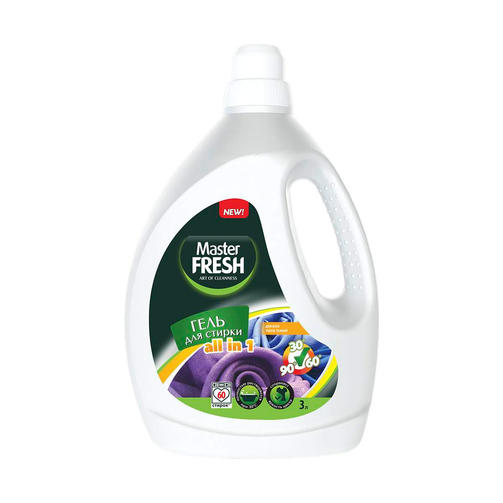 Оптимальная формула геля для стирки Master FRESH это идеальное сочетание качества и цены в одном флаконе.Гель предназначен для стирки различных белых и цветных изделий, из синтетических, смешанных и натуральных тканей. Подходит для всех типов стиральных машин, а так же для ручной стирки.Отлично растворяется в воде, полностью выполаскивается из белья, отстирывает различные загрязнения. Сохраняет структуру ткани, интенсивность и яркость цвета даже после частого применения. Придает изделиям свежесть и приятный легкий аромат луговых цветов.Флакон эргономичный и очень удобный, за счет специально разработанных выемок флакон не выскальзывает даже из влажной руки. 595,94 ₽ / шт