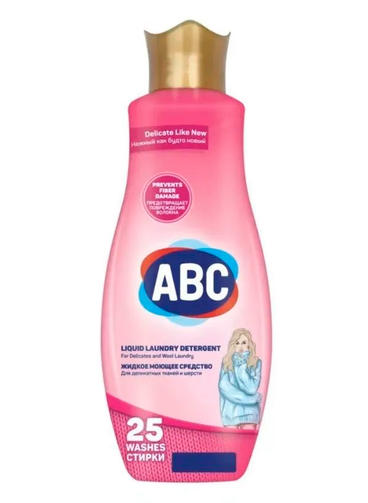Гель для стирки АВС для Деликатных тканей- 1500 мл. Жидкое средство удаляет стойкие пятна, в комплексе с активными компонентами усиленного действия глубоко проникают в волокна ткани и эффективно справляются со всеми видами загрязнений, легко справляется с пятнами от напитков и еды, следами от красок и фломастеров, уличной грязью. Благодаря системе контроля пенообразованию, средство эффективно выполаскивается и не остается в волокнах ткани после стирки. Натуральные ферменты и компоненты удаляют 99,9% микробов, а также все виды бытовых клещей и продукты их жизнедеятельности из волокон ткани. Средство качественно отстирывает загрязнения, удаляет посторонние запахи, придает вещам свежесть и приятный аромат. Гель не нарушает эластичность волокон, способствует поддержанию формы и прочности ткани. Деликатное средство для стирки восстанавливает и защищает текстуру материалов. Гель, предназначенный для деликатной (шерстяной и шелковой) одежды, предотвращает перенос красителей между волокнами, сохраняет стойкость цвета, обеспечивает одежде яркость и насыщенность. Он подходит для большинства разновидностей тканей, идеален для шерстяных и шелковых вещей. Типы тканей: хлопок, лен, полиэстер, вискоза, нейлон, акриловое волокно. Гель для стирки цветного белья ABC — это средство для бережного ухода за вещами. Он эффективно удаляет загрязнения, сохраняет мягкость и цвет ткани. Гипоаллергенный гель с эко-формулой из натуральных ингредиентов безопасен в применении. Его состав безвреден для чувствительной кожи, подойдет для детского белья. Средство отличается экономичным расходом. Бутылка объемом 1.5 литра с колпачком–стаканчиком рассчитана на 25 и более стирок. Жидкие гели составляют достойную альтернативу порошкам, таблеткам, пластинам и другим видам бытовой химии. Вы устали видеть, как ваша одежда теряет свои яркие цвета? С гелем для стирки ABC ваша одежда будет выглядеть как новая! Наша уникальная формула не только удерживает цвета вашей одежды от выцветания, но также помогает защитить ткань и сохранить ее первоначальную форму. 299,00 ₽ / шт