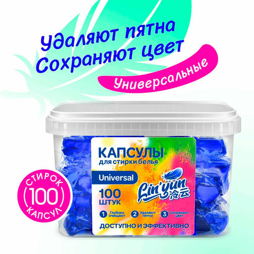 Представляем Вам капсулы для стирки белого и цветного белья "Lin'Yun" 100 шт, которые эффективно справятся с любыми типами запахов и сложными пятнами абсолютно на любых тканях и при минимальных температурах. Приятный аромат легко выражен и долго сохраняет свежесть белья. Наша бытовая химия не содержит фосфатов, хлорных соединений, агрессивных химикатов и этилового спирта. Капсулы для стирки одежды Линь Юнь - эффективное средство для безупречного отстирывания белья и сохранения яркости и структуры ткани. Обеспечивают гигиеническую чистоту, проникая глубоко в волокна ткани и расщепляя самые сложные загрязнения. Препятствуют появлению катышков и ворсинок, устраняют неприятные запахи. Разлагаемая формула не загрязняет окружающую окружающую среду, не вредит здоровью, не портит технику. Концентрированный жидкий порошок в водорастворимых капсулах предназначен для автоматической стирки и подходит для всех типов стиральных машин. Стиральные капсулы предотвращают появление накипи в стиральной машине и не требуют добавления кондиционера. Капсулы для стирки "ЛинЮн"- прекрасное соотношение цены и качества. Мы рекомендуем использовать 1 капсулу на 2-3 кг. сухого белья. Для 3 кг и более или сильно загрязненной одежды рекомендуем использовать 2 капсулы. После контакта с капсулой тщательно вымойте руки. 12,00 ₽ / шт