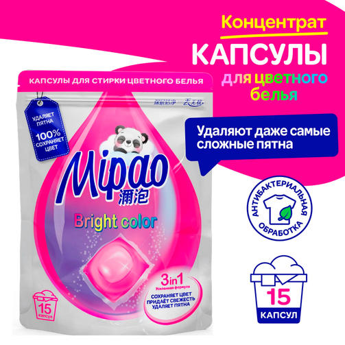 MIPAO Капсулы-концентрат для стирки для цветного белья, 15 шт (1 капсула - 15г=1стирка) цена за шт