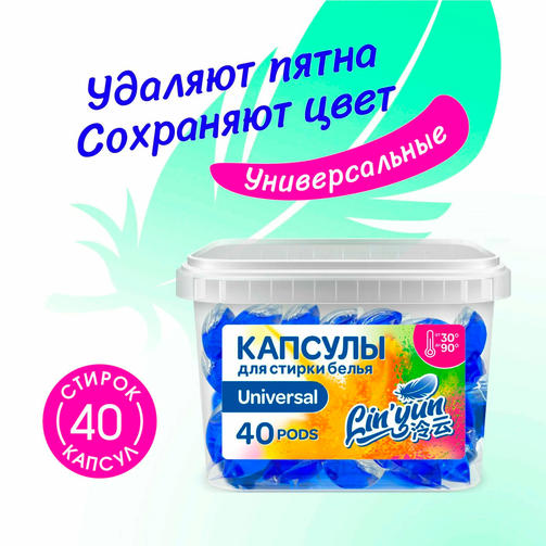LIN'YUN Капсулы для стирки для белого или цветного белья, 40шт, цена за шт