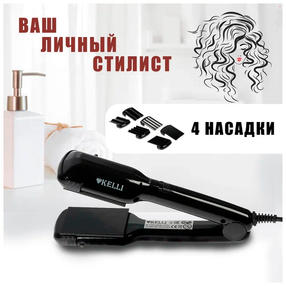 Электрические щипцы Kelli KL-1238. Устройство для 4 фасонов причёски: прямые волосы, глубокие волны, обычные кудри и микро-кудри. 4 насадки с керамико-турмалиновым покрытием пластин, поэтому не повреждают структуру волос, сохраняя их гладкость и естественный блеск. Вы можете экспериментировать до бесконечности, создавая классические или объемные локоны с помощью этих щипцов дома, без посещения салона. Ведь такая прическа, вне зависимости от моды, смотрится выгодно, красиво и уместно. Оптимальная и стабильная температура нагрева. Переключатель Вкл./Выкл. Световой индикатор питания. Мощность 45 Вт. Комплектация: плойка для волос - 1 шт., пластины-гофре 3 пары, выпрямление 1 пара - 1 шт. 1 787,50 ₽ / шт