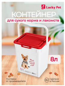 Контейнер Lucky pet 8 л предназначен для хранения корма для животных. В зависимости от плотности сухого корма, размера и формы гранул, контейнер может вместить от 3,5 до 6 кг корма. Крышка герметично фиксируется и защищает содержимое от посторонних запахов, заветривания, попадания света, влаги и вредителей. Удобная прочная ручка помогает переносить контейнер с места на место. Плоская крышка позволит ставить один контейнер на другой для экономии места. Нанесенный с помощью технологии IML декор не стирается и не повреждается в процессе использования. 380,96 ₽ / шт