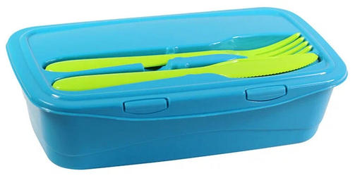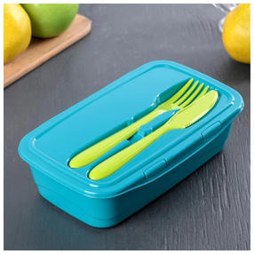 19 М 1235 Контейнер 1л БИРЮЗОВЫЙ для обеда со столовыми приборами М-пластика (Art.999830)