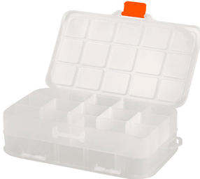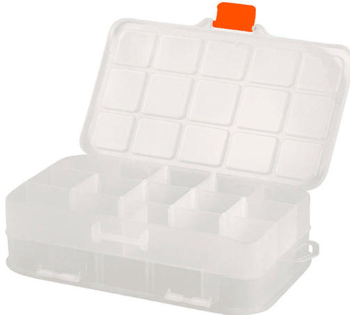 Органайзер для мелочей. Внутреннее деление на отсеки со съёмными перегородками. Прозрачная, плотно-прилегающая крышка позволяет увидеть содержимое не открывая органайзер. 329,93 ₽ / шт