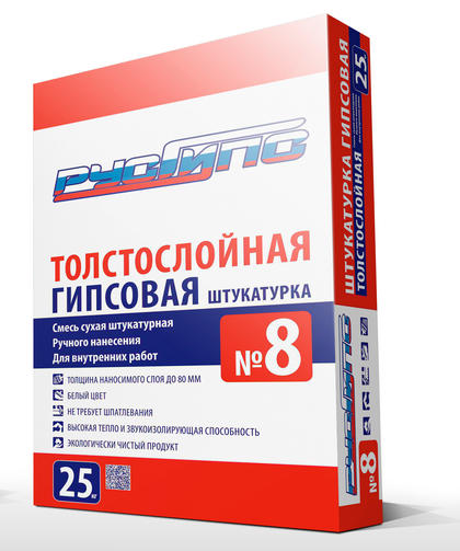 РУСГИПС №8 Штукатурка гипсовая ТОЛСТОСЛОЙНАЯ 25 кг (60)