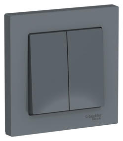 Выключатель коллекции AtlasDesign (в сборе, цвет грифель) 2-клавишный Применим для подключения к сетям 250 В с номинальным током 10 А.. - Двухклавишный выключатель позволяет управлять двумя источниками света с одной точки. - Лицевые панели из качественного ABS-пластика, устойчивого к царапинам и УФ-излучению. - Изделие поставляется в комплекте с рамкой того же цвета. - Усиленные прямые монтажные лапки для лучшей фиксации механизма в монтажной коробке. 700,00 ₽ / шт