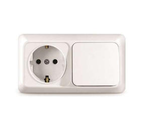 Блок ОП Олимп 1-кл. вык.+ роз. с заземл. горизонт. бел. UNIVersal О0032 представлен потребителю в серии "Олимп". Серия "Олимп" для открытой установки сочетает в себе функциональность с практичностью. Изделия данной серии удачно вписываются в интерьер любого помещения и производят приятное впечатление. Блок объединяет одноклавишный выключатель и розетку. Корпус представляет собой форму из пластика, белого цвета. Контактная группа изделий изготовлена из латуни. Монтируется горизонтально, на глубину 48 мм, на поверхность стены. Рекомендованы для жилых помещений и административных зданий. Срок службы составляет 5 000 циклов включения/отключения. 480,00 ₽ / шт