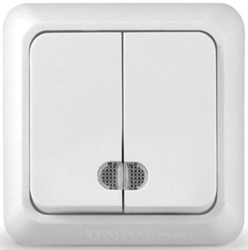 Выключатель 2-кл. ОП Олимп 10А IP20 с индик.бел. Universal О0123
