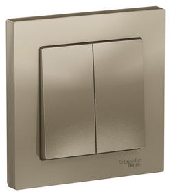 Выключатель коллекции AtlasDesign (в сборе, цвет шампань) 2-клавишный Применим для подключения к сетям 250 В с номинальным током 10 А.. - Двухклавишный выключатель позволяет управлять двумя источниками света с одной точки. - Лицевые панели из качественного ABS-пластика, устойчивого к царапинам и УФ-излучению. - Изделие поставляется в комплекте с рамкой того же цвета. - Усиленные прямые монтажные лапки для лучшей фиксации механизма в монтажной коробке. 480,00 ₽ / шт