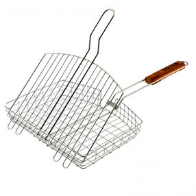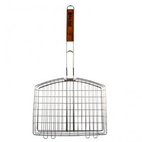 Объемная хромированная решетка гриль Palisad Camping 69559 размером 305 х 235 х 55 мм позволяет легко жарить пищу с двух сторон в мангале. Объемная конструкция решетки с возможностью регулировки высоты позволяет приготовить крупные куски мяса и куриную тушку без потери сочности. Преимущества Залогом надежности и долговечности решетки выступает высококачественная жаропрочная сталь, из которой она выполнена. Хромовое покрытие придает решетке износостойкость и устойчивость к коррозии. За счет увеличенных опорных стержней решетка надежно фиксируется на мангале, а для жарки используется вся рабочая площадь. Для предотвращения случайного раскрытия решетки во время переворачивания решетка оснащена широким кольцом-фиксатором. Рукоятка выполнена из древесины, поэтому ее приятно и удобно держать в руках. 1 100,00 ₽ / шт
