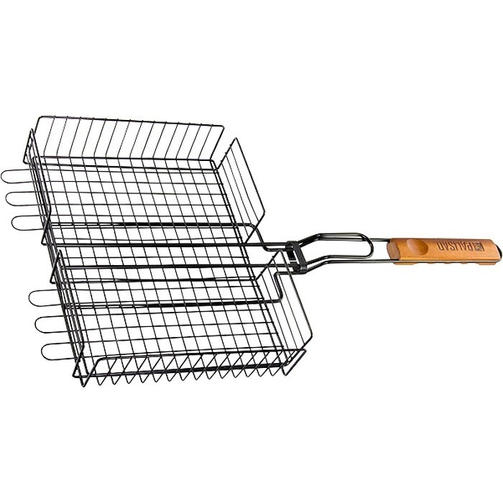 Объемная решетка гриль Palisad Camping 69552 размером 260 х 320 х 65 мм, с антипригарным покрытием, повышает удобство приготовления еды в мангале. Благодаря объемной конструкции решетку можно регулировать по высоте для качественного приготовления крупных кусков рыбы, мяса и даже целой тушки курицы без вытекания сока. Преимущества Надежность и высокий ресурс — решетка выполнена из жаропрочной стали высокого качества. Антипригарное покрытие — продукты не прилипают к решетке. Толстое кольцо-фиксатор — во время переворачивания решетки содержимое не выпадает. Увеличенные опорные стержни — в ходе готовки рабочая площадь решетки используется полностью. Комфортное использование — деревянная эргономичная рукоятка удобно лежит в руке. 1 060,00 ₽ / шт