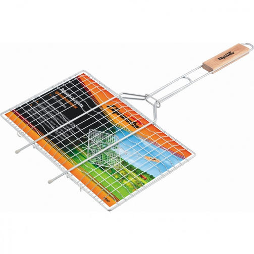 Хромированная решетка-гриль Sparta 69565 размером 260 х 450 мм будет полезна для любителей блюд, приготовленных на углях. С ее помощью можно качественно и равномерно пожарить мясо, овощи, птицу и рыбу, поэтому они получаются вкусными и сочными. Преимущества Долговечность и надежность решетки достигается за счет качественного материала изготовления — жаропрочной пищевой стали с хромовым покрытием. Рукоятка из древесины удобно лежит в руках и приятна на ощупь. Решетка имеет увеличенные опорные стержни, благодаря чему она надежно фиксируется на мангале, а рабочая поверхность при этом используется полностью. 1 210,00 ₽ / шт