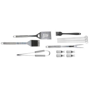 Набор для барбекю ZEIDAN Z-7002 из 16 предметов. Изготовлен из высококачественной нержавеющей стали, кисть из силикона. В комплект входят: лопатка, вилка, щётка для чистки, щипцы для барбекю, шампуры (5 шт), силиконовая кисточка, держатели для кукурузы (4 шт), нож и сумка для хранения. 2 410,00 ₽ / шт
