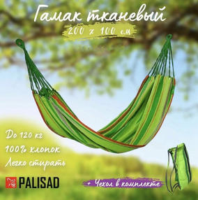 Гамак Camping Palisad 69585 размером 200 х 100 см, без планок, сделает отдых на природе комфортным. Он поможет расслабиться и приятно провести время за чтением, подарит освежающий сон, а также обеспечит спокойную работу за ноутбуком на свежем воздухе. Преимущества Гамак изготовлен из 100% хлопка, а значит, экологически безопасен и позволяет телу дышать. Длина полотна составляет 200 см, допустимая нагрузка - 120 кг, а значит, гамак практически не имеет ограничений по использованию. За счет отсутствия планок гамак легко стирать. В комплекте имеется чехол, облегчающий транспортировку. 2 000,00 ₽ / шт