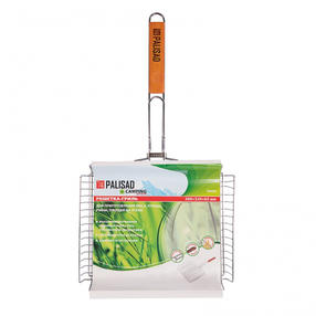 Объемная хромированная решетка гриль Palisad Camping 69554 размером 260 х 320 х 65 мм позволяет легко жарить пищу с двух сторон в мангале. Объемная конструкция решетки с возможностью регулировки высоты позволяет приготовить крупные куски мяса и куриную тушку без потери сочности. Преимущества Залогом надежности и долговечности решетки выступает высококачественная жаропрочная сталь, из которой она выполнена. Хромовое покрытие придает решетке износостойкость и устойчивость к коррозии. За счет увеличенных опорных стержней решетка надежно фиксируется на мангале, а для жарки используется вся рабочая площадь. Для предотвращения случайного раскрытия решетки во время переворачивания решетка оснащена широким кольцом-фиксатором. Рукоятка выполнена из древесины, поэтому ее приятно и удобно держать в руках. 1 020,00 ₽ / шт