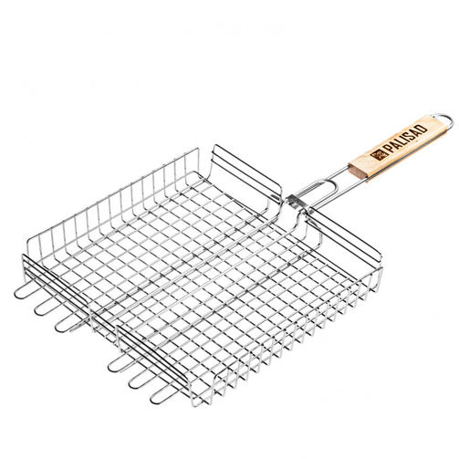 Объемная решетка-гриль Palisad Camping 69647 размером 340 х 340 х 60 мм, из нержавеющей стали, предназначена для приготовления блюд из мяса, рыбы и овощей. Преимущества Экологичность — нержавеющая сталь не выделяет вредных веществ при нагревании. Надежность — решетка из нержавеющей стали рассчитана на температуру до 900 ℃ и устойчива к образованию коррозии. Приготовление продуктов разной толщины — высота рабочей поверхности легко регулируется. Широкое кольцо-фиксатор — исключает случайное раскрытие решетки при переворачивании во время приготовления пищи. Удобная деревянная рукоятка — не нагревается и не обжигает руки в процессе приготовления. Увеличенные опорные прутья - для удобного размещения на мангале. 2 400,00 ₽ / шт