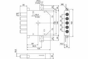 Врезной замок Эльбор Гранит 1.06.12 - усиленный 6-ти сувальдный замок. Соответствует наивысшему 4 классу защиты по ГОСТ 5089-2011. Не имеет лицевой планки и с торца крепится на бонки. Сверху и снизу – выходы под тяги. Рекомендуется врезать в металлические и бронированные двери толщиной 40-80 мм. Особенности дверного замка ЭЛЬБОР 1.06.12: Тип: универсальный (на правые и левые двери). 5 круглых ригелей диаметром 18 мм. Механизм Combo Spring (запатентован). 6 сувальдных пластин. Устойчивое к коррозии покрытие. Защита от распространенных методов взлома: Выбивание: скошенная задняя часть засова. Высверливание: стальной закаленный шарик в фиксаторе. Спиливание: система «антиспил» в одном из ригелей. Свертыш: ослабление зубчатой гребенки. Отжим: вылет ригелей на 40 мм, выходы под тяги. Отмычка: зубцы на сувальдах, П-образный паз фиксатора. Вскрытие перебором ключей: секретность – свыше 1.5 млн уникальных комбинаций ключа. 2 984,00 ₽ / шт