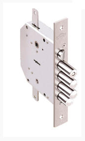 1.06.42 Замок врезной ГРАНИТ никель, сувальдный- стержни 3шт. диаметр 18мм, тяги