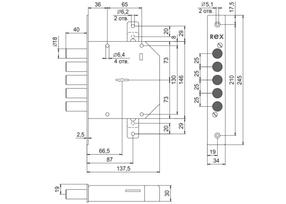 RеХ.3.1 Замок врезной 6-ти сувальдный, 5стержней ф 18 мм, 5 ключей