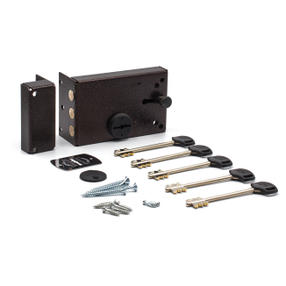 Замок накладной 1.02.61.КМА ЛАЗУРИТ российского производителя "Эльбор" для различного типа дверей правого и левого открывания. Корпус изготовлен из стали с гальваническим покрытием. Тип механизма секретности - 8-сувальдный совместный с корпусом. В конструкции предусмотрена задвижка-затвор. Открывается снаружи ключом, а изнутри вертушкой. Повышенная защита от высверливания и отмычек. Особенности: Удаление ключевого отверстия - 58 мм. Количество ключей - 5. Тип ригелей - цилиндрический. Количество ригелей - 3 диаметром по 14 мм. 2 620,00 ₽ / шт