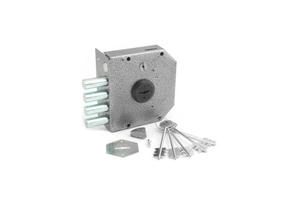 Накладной замок Class КЛАСС - GSS-031 (б/т/о) 19224 с 4 цилиндрическими ригелями и задвижкой. В комплекте 5 ключей. Способ запирания изнутри - ручкой. Плоскосувальдный замок, с двумя внутренними тягами и задвижкой 4-х ригельный засов, ригель Ф18мм, вылет засова 40мм за 4 оборота ключа, задвижка Ф18мм 4 454,00 ₽ / шт