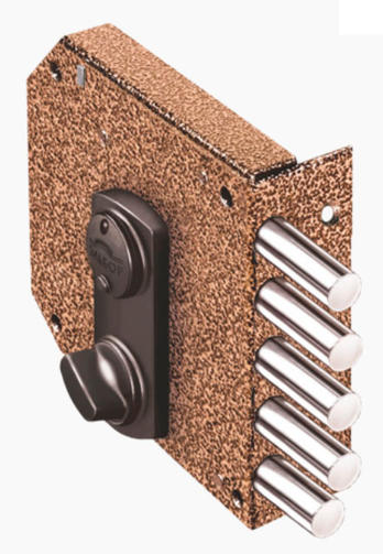 1.05.61 МА Замок накладной БАЗАЛЬТ никель, сувальдный, стержни- 4 шт,14 мм задвижка, медный антик