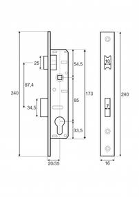 Замок врезной узкопрофильный под цилиндр VETTORE 153-30 CP (Хром)