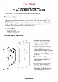 Межкомнатный механизм VETTORE WC 410 B-S-GR KEVLAR AB (межос. 95 мм, бексет 50 мм)предназначен для установки на деревянные межкомнатные двери, двери в санузел и ванную комнату в комплекте с раздельной ручкой и фиксатором. Замок обеспечит надежную защиту помещения. Размер — межос. 95 мм, бексет 50 мм. Оснащен язычком из кевлара — высокопрочного пластика. Сторона открывания: универсальная. Язычок: пластиковый. Цвет: AB — Бронза. Дополнительная фиксация: присутствует. В комплект товара входит механизм, ответная планка, монтажный комплект. Данная защелка является стандартной и может быть установлена в комплекте с любой ручкой для межкомнатных дверей на раздельном основании. В магазине строительного инструмента дверной фурнитуры VETTORE вы можете купить комплекты для металлических дверей, цилиндры, личинки, замки под ключ, завертки, пружины, магнитные механизмы. 774,00 ₽ / шт