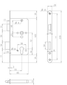 75310_Корпус замка DL401/55 PZ72 Rt (нержавеющая сталь) реверсивный с запор.планкой, 3 класс