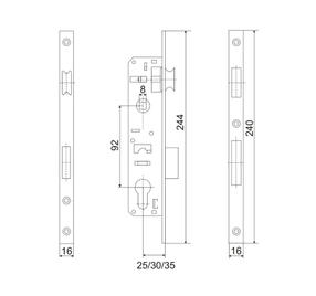 Замок врезной узкопрофильный под цилиндр VETTORE 192P-35 CP (Хром)