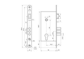 Корпус замка под цилиндровый механизм с ручками, защелкой, 3 ригелями для входных дверей. 2 600,00 ₽ / шт