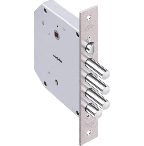 1.05.41 Замок врезной БАЗАЛЬТ никель, сувальдный стержни 3шт. диаметр 14мм под фалевую ручку задвиж