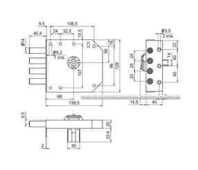 Замок накладной ReX 2.14 российского производителя "Эльбор" для установки на металлические двери. Корпус изготовлен из стали с гальваническим покрытием. Тип механизма секретности - сувальдный совместный с корпусом. В конструкции не предусмотрена задвижка. Открывается снаружи и изнутри с помощью ключа. Особенности:Размеры корпуса - 146х135х30 мм.Количество ключей - 5.Тип ригелей - цилиндрические.Количество ригелей - 4 диаметром по 14 мм. 2 110,00 ₽ / шт
