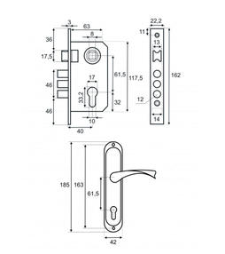 Замок врезной VETTORE 1023 AB m60Z в комплекте с ручкой и цилиндром (Бронза)