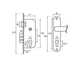 Замок врезной VETTORE 1523 AB m60Z в комплекте с ручкой и цилиндром (Бронза)