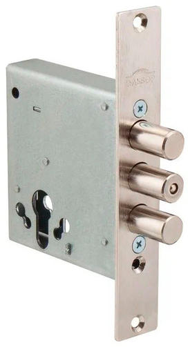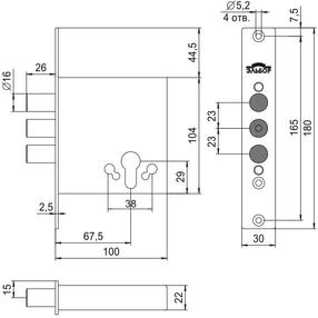 1.01.07 Замок врезной ЛАЗУРИТ, никель, под цилиндр. стержни 3 шт 116 мм
