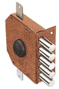 1.06.52.МА Замок накладной ГРАНИТ никель, сувальдный- стержни 5шт. диаметр 18мм тяги,, медный антик
