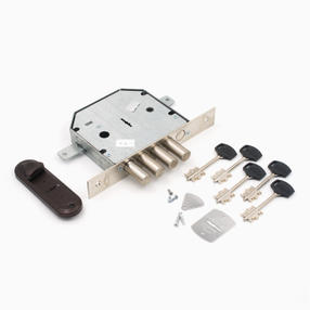 1.08.31 Замок врезной РУБИН никель, сувальдный- стержни 4шт. диаметр 18мм тяги, Под фалевую ручку